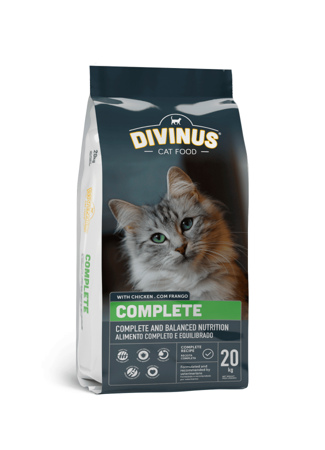 DIVINUS Cat Complete-ը լիարժեք և հավասարակշռված չոր կեր է, որը մշակվել է ինչպես տանը, այնպես էլ դրսում պահվող չափահաս կատուների համար: Անասնաբույժների կողմից մշակված՝ այն պարունակում է կենդանական սպիտակուց՝ որպես հիմնական բաղադրիչ, և ուշադիր ընտրված բնական բաղադրիչներ՝ ընդհանուր առողջությունը պահպանելու համար: