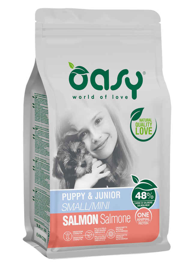 Oasy Dry Dog OAP Puppy and Junior Small Mini Salmon  Փոքր ցեղատեսակի շան ձաքի կեր  սաղմոնով