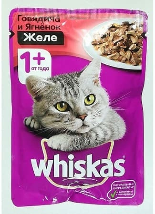 Կեր կատվի Whiskas 85գ տավարով և գառով դոնդող (желе)